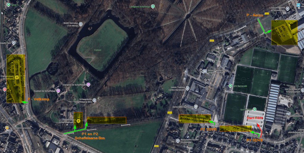 De parkeerplekken op het sportpark zelf zal gesloten blijven omdat hier de route start en eindigt.